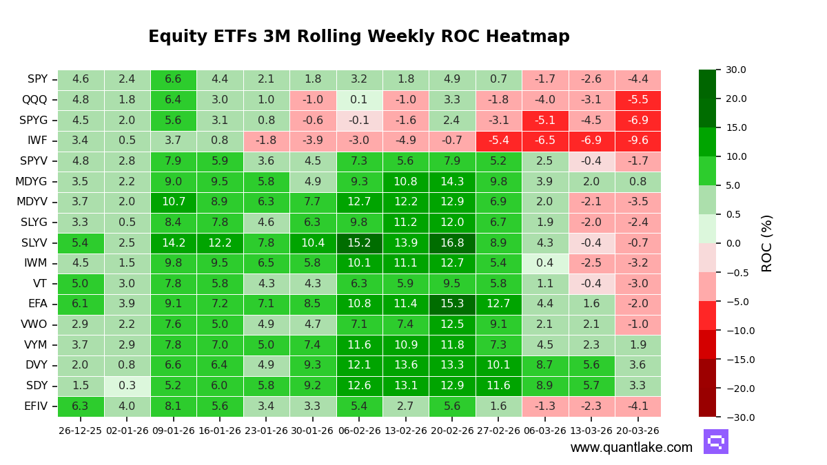 - Returns: SPY & Quantlake 16.8% vs RSP 7.9%